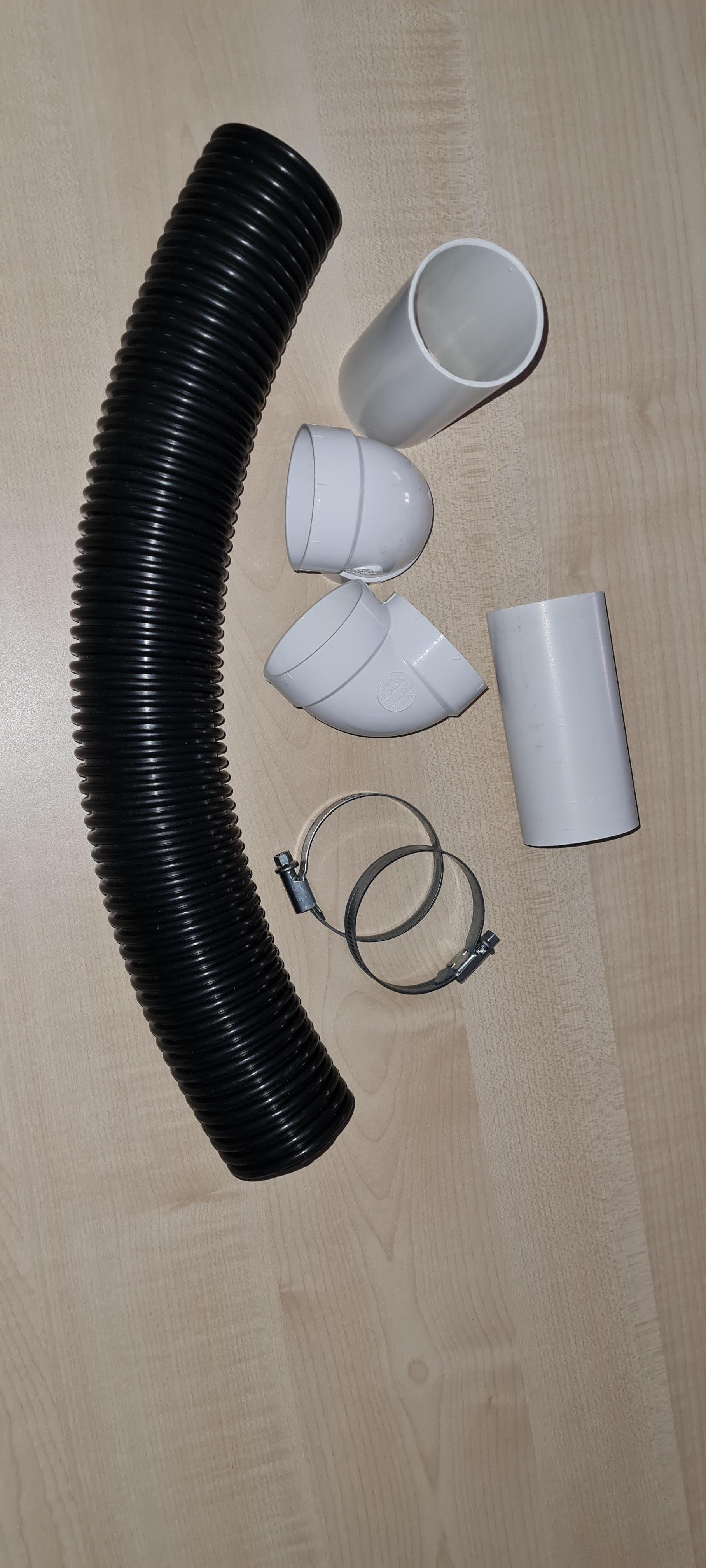 A csomag tartalma:- 2 db kisívű könyök- 1 db 40 cm-es flexibilis cső- 2 db 10 cm-es merev cső- 2 db bilincs