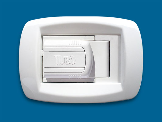 Sirio falicsatlakozó, műanyag, fehér színben, gyermekbiztos zárral, 50 mm-es rendszerhez.